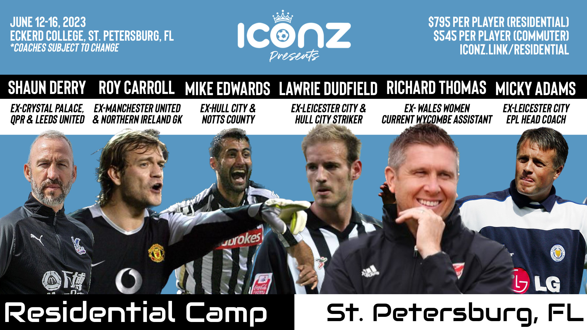Join us for our annual Residential Camp at the prestigious Eckerd College with coaches including: Roy Carroll - former Manchester United & Northern Ireland GK Shaun Derry - ex-Crystal Palace Player & EPL Assistant Coach Mike Edwards - former Hull City & Notts County Lawrie Dudfield - ex-Leicester City & Hull City Richard Thomas - Wales International Women Assistant Coach Micky Adams -ex-Leicester City Premier League Head Coach |